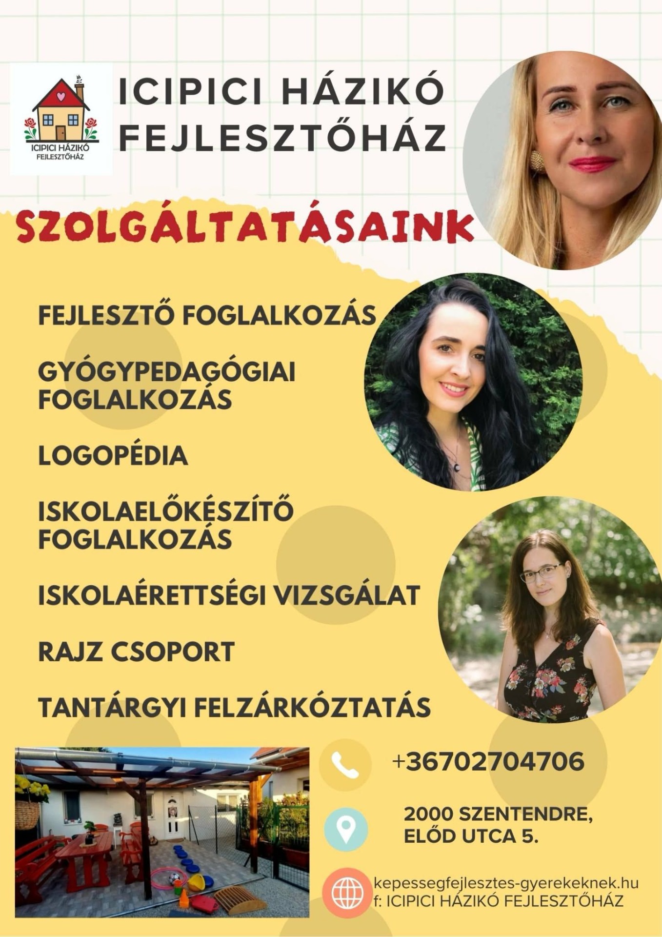 - Családias, barátságos és gyermekbarát környezet, ahol a szülő is részese lehet a fejlesztési folyamatnak